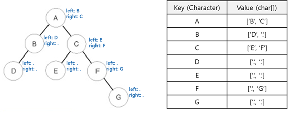 다음과 같이 key에는 노드의 값, value에는 left, right 자식노드의 값을 배열로 넣어주었다.